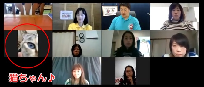 iPhone で参加してくれたかたの画面には、ねこちゃんがずっと映っていて、和ませてくれました。