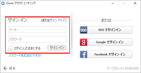 サインインの画面が出てきたときには、メールアドレスとパスワードでサインインをします。