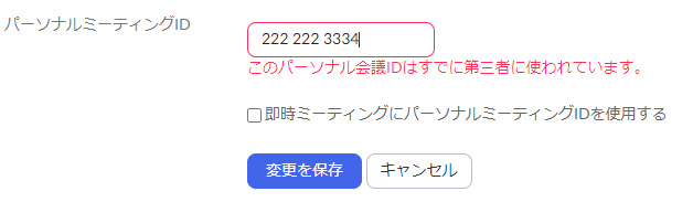 ただし、すでに使用されているパーソナルミーティングIDを入力すると、
