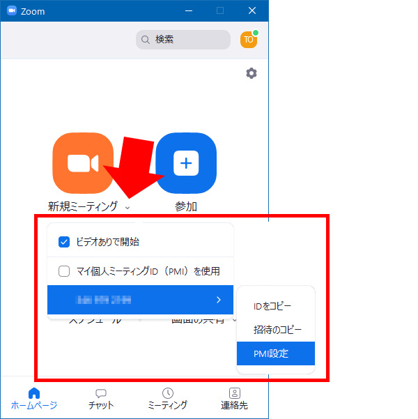 Zoomのデスクトップクライアントで、「新規ミーティング」の右下にある小さな v をクリックして、「パーソナルミーティングID」⇒「PMI設定」と辿ってください。