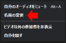 ミーティングに入ってから名前を変更したいときには、自分の画像の上で右クリック。