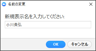 Zoomでミーティングに入る時、もしくは、入ってから、ご自分の名前を漢字のフルネームに変更してください。
