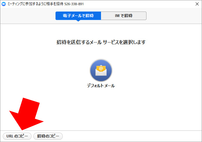 2.「URLのコピー」をクリックして、そのURLを参加者に伝える。