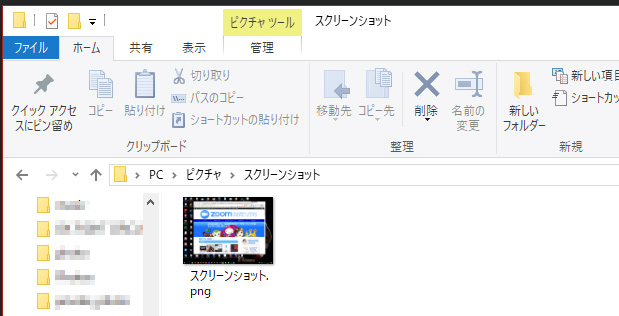 保存場所は、ピクチャの下のスクリーンショットというフォルダです。