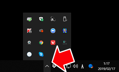 まず、右下のタスクバーにある「^」マークをクリックします。