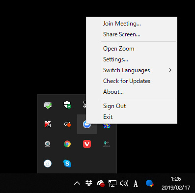 その中から、Zoomのアイコンを右クリックして、「Switch Languages」を選択します。