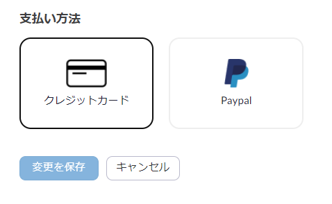 Zoomの有料アカウントは、クレジットカード、または、Paypal での支払いになります。