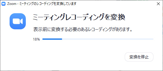 パソコンにレコーディングした場合、ミーティングを終了すると、パソコン上で動画データの生成が始まります。