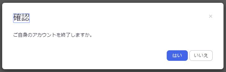 「ご自身のアカウントを終了しますか。」というウィンドーが出てくるので、「はい」をクリックします。