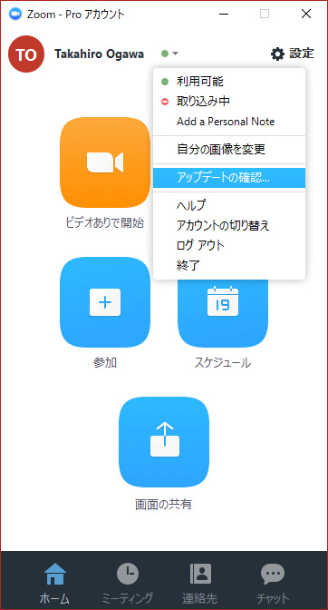 Zoomのアップデート確認方法・アップデート方法