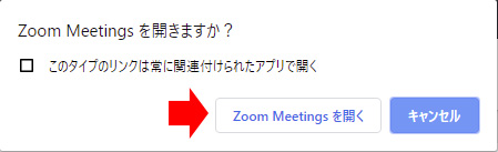 でも、招待URL をクリックすると、一旦、ブラウザが起動して、そこからZoomアプリを起動してミーティングに参加することになるので、時間がかかります。