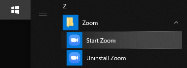 デスクトップにアイコンがなければ、スタートメニューから、Zoom ⇒ Start Zoom を選択。