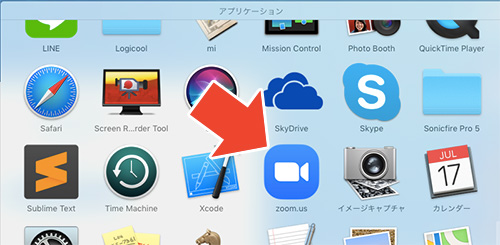 なければ、アプリケーションフォルダの中にある zoom.us をクリックします。