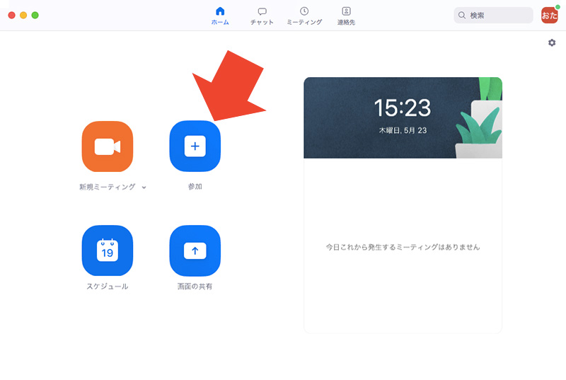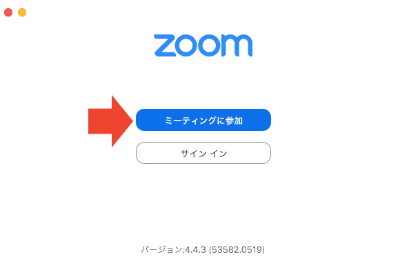 サインインしていなければ、こんな画面になっているので、「ミーティングに参加」をクリック。