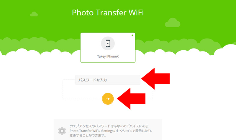 パスワードを聞いて来るので、「ウェブ接続パスワード」を入力して、オレンジのボタンをクリックします。