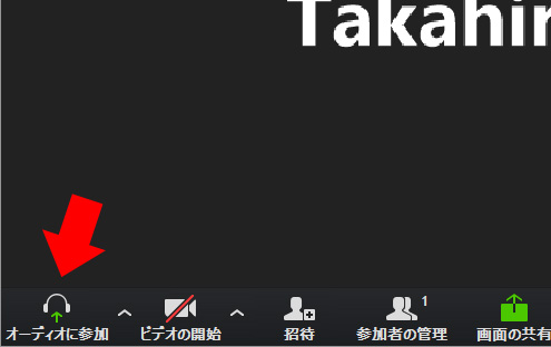 再度、マイクやスピーカーを有効にするには、「オーディオに参加」をクリックします。