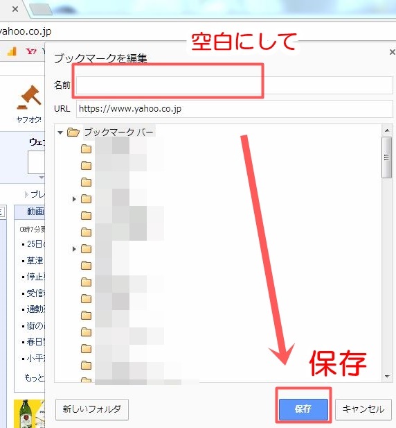 5.コンパクトにアイコンを並べるため、名前は不要なので、消します。