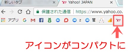グーグルクロームのツールバーにアイコンをコンパクトに並べる方法