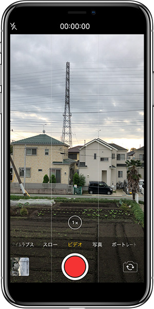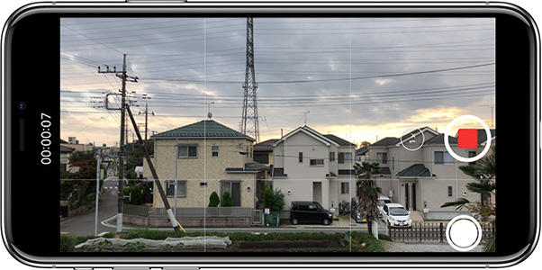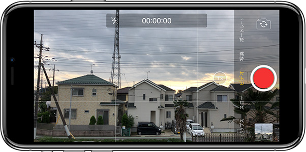 iPhoneでビデオを撮影するときには、横にした状態から、撮影開始ボタンをタップしてください。