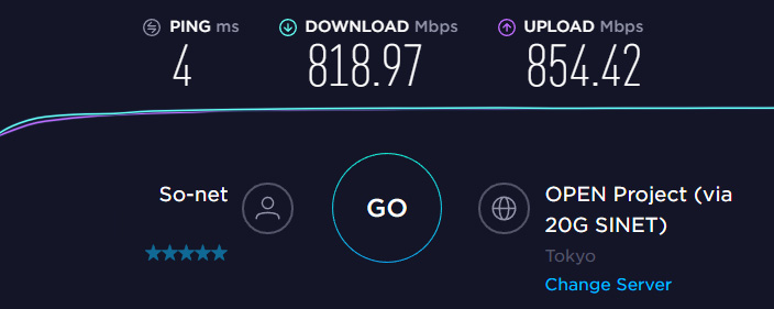 爆速な上に、ダウンロードとアップロードのバランスが取れています。