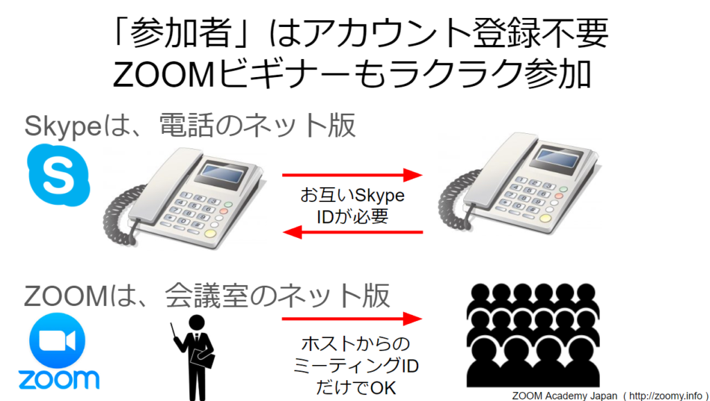 Zoomは、Skypeと違って、お互いにアカウントを取る必要がなく、ホストのみがアカウントを持てばいいですよね。