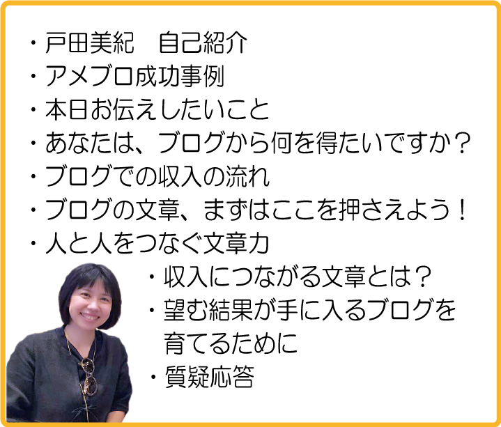 ふつうの主婦だった私がブログを育てて結果を出した方法や、どうやってブログを育てるのかの極意をお話しします。