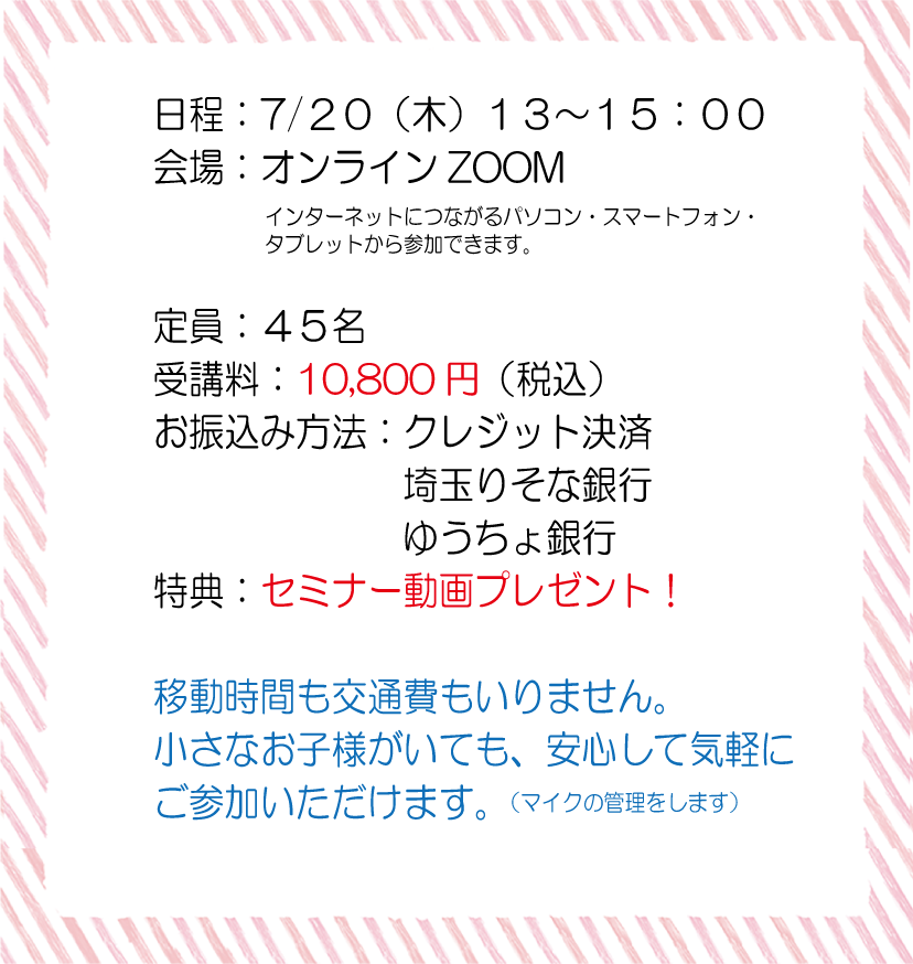 ぜひ、本セミナーの前に、ZOOM体験会を楽しんでくださいね。