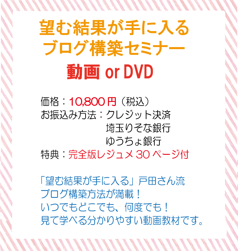 「望む結果が手に入るブログの構築セミナー」動画 or DVD、気になる価格は・・