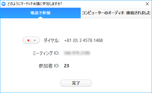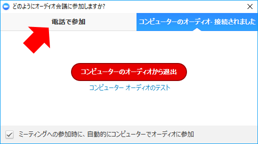 これで、電話を音声入力機器として、ミーティングに参加することができます。
