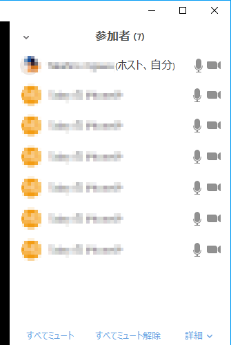 ハウリングを起こしている参加者などは、みんなの迷惑になりますので、主催者がその参加者を「ミュート」にする場合もあります。