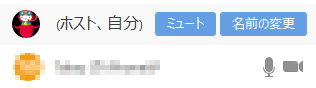 主催者は、自分の名前に横に、「ミュート」と「名前の変更」があります。