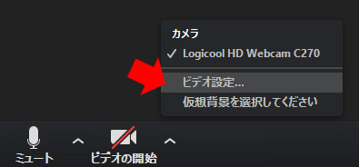 もしくは、「ビデオの開始」の右側にある「^」から「ビデオ設定」をクリックすると設定画面に入れます。