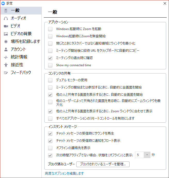 Zoomの設定画面では、Zoomの基本的な動き、オーディオのテスト、ビデオの設定などができます。