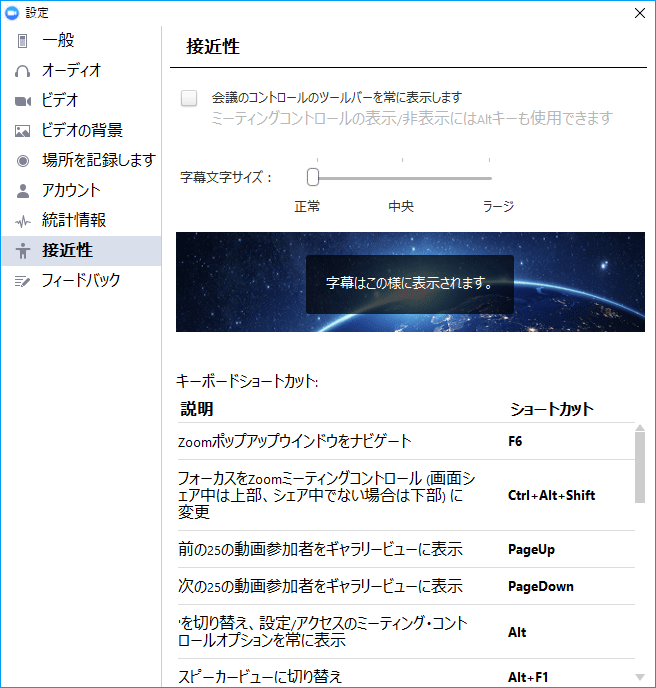 その他、Zoomで使う機能のショートカットキーを参考にして下さい。