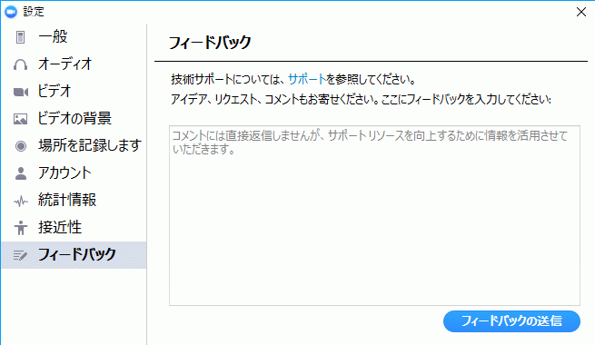 Zoomの開発元へ機能に関する希望やコメントを送ることができます。