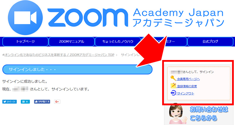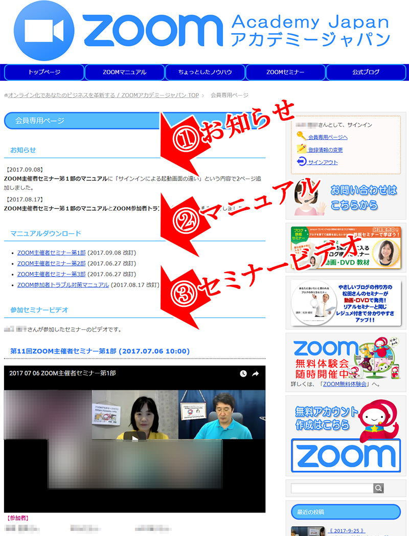主催者セミナーをご受講いただいた皆様は、Zoomアカデミージャパンのホームページより、会員限定ページへのアクセスができます。