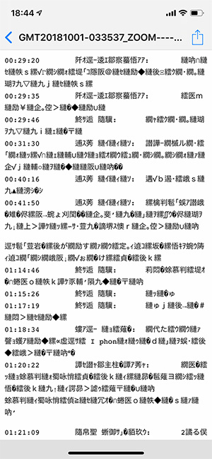 - このテキストファイルを、iOSのメールに添付して送ると読めます。