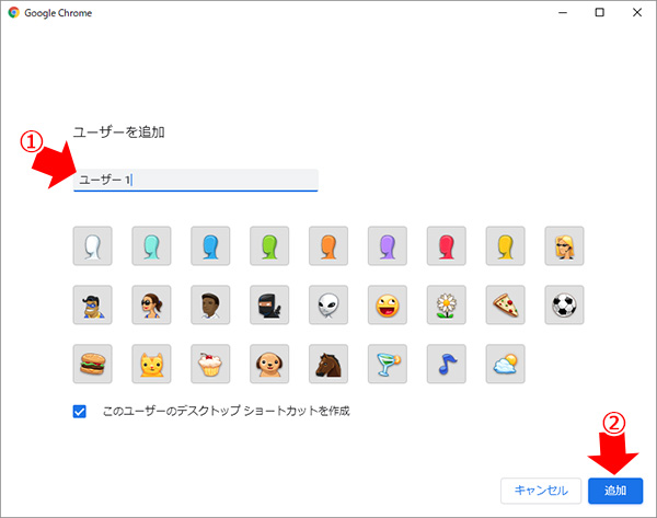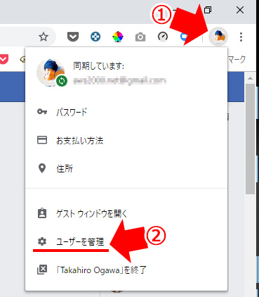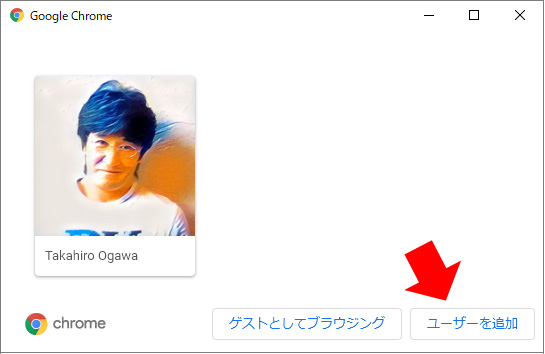 - Google Chromeの右上にある小さな顔のアイコンをクリック