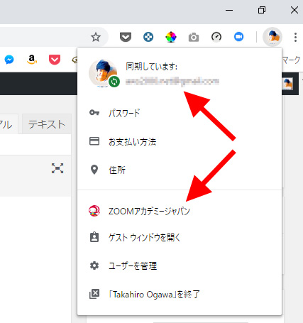 これにより、各Googleアカウントの中で、Facebook、twitter、アメブロ、Zoomなど、様々なアカウントも切り替えることができます。