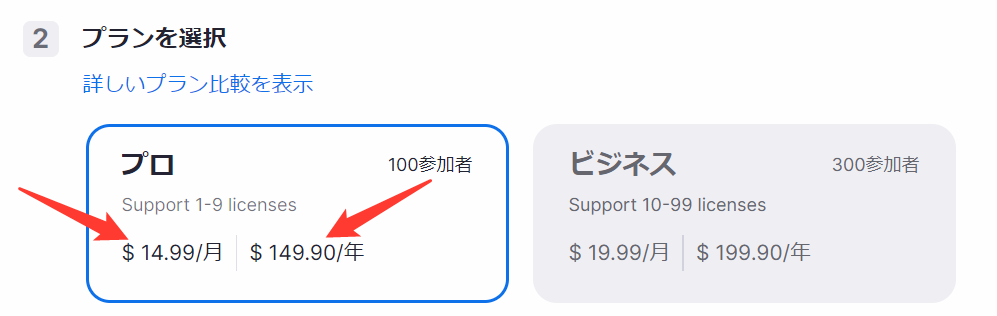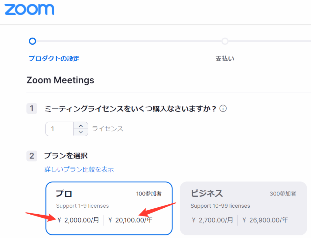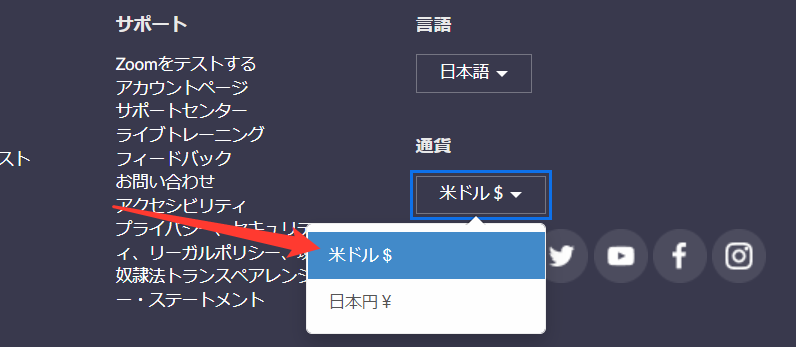 日本在住のユーザーは、Zoomの有料アカウントへのアップグレードを円建てとドル建ての2種類で決済することが可能です。