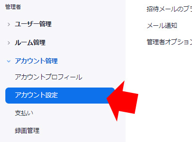 zoom.us の「アカウント管理」から「アカウント設定」をクリックします。