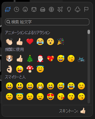 「・・・」をクリックすると、膨大な数の絵文字が選択できます。