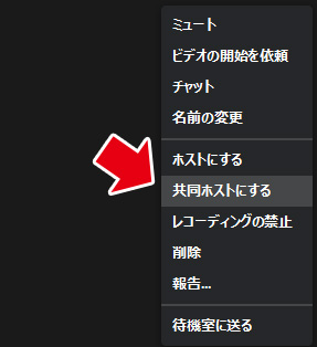 - ホストは、一旦、その人の共同ホスト権限を取り下げます。