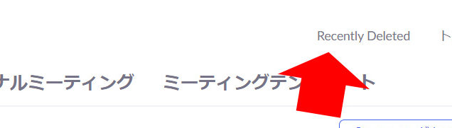 誤って削除してしまったスケジュールを復元するには、ミーティングの場合は、右上にある「Recently Deleted」をクリックします。