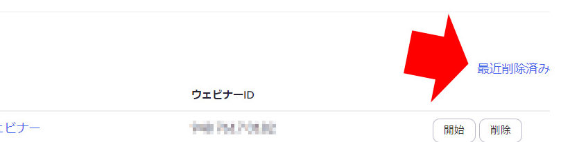 Zoomウェビナーの場合は、「最近削除済み」という表示になっています。