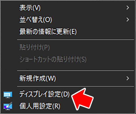 Windowsパソコンでは、デスクトップ上のアイコンなどがない箇所で右クリック。