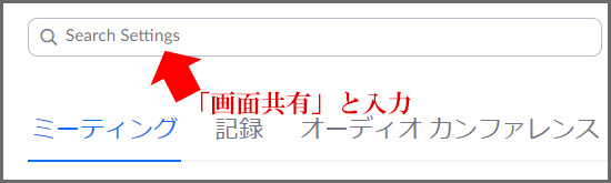 「Search Setting」と書かれている検索窓に「画面共有」と入力してEnterキーを押してください。