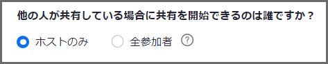「他の人が共有している場合に共有を開始できるのは誰ですか?」は、「ホストのみ」に設定することをお勧めします。