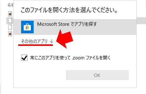 ☑ 常にこのアプリを使って .zoom ファイルを開く」には、チェックを入れたままにしておいてください。