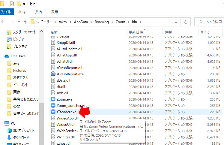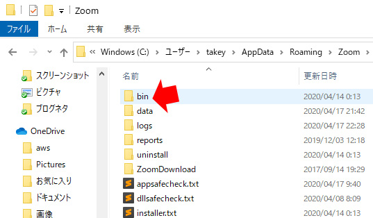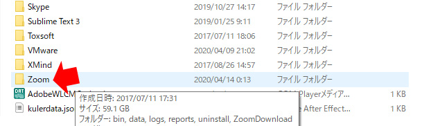 その中に、「Zoom」が見つかりますので、「Zoom」フォルダを開きます。